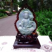 老坑水润浅春彩 翡翠A货 大慈大悲观世音菩萨摆件