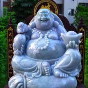 天然翡翠A货 冰糯春带彩 超大尊饱满笑佛摆件