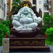 老坑飘花满绿 超大尊笑佛摆件