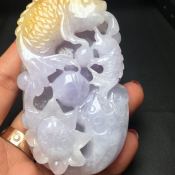 糯冰紫罗兰带黄翡 年年有余翡翠手玩件