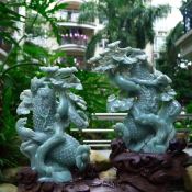 翡翠A货 老坑精雕浅绿 飞黄腾达摆件翡翠一对