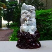 218*250*62寸精雕黄加绿 童子送福翡翠摆件