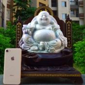天然翡翠A货 精美春带彩 大件财源滚滚笑佛摆件