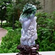 翡翠A货 老坑糯种紫罗兰飘绿 山水摆件