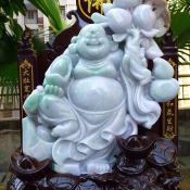 精美春带彩 天然翡翠A货 大件笑佛摆件