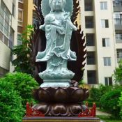 天然翡翠A货 精美水润满绿 大尊观音菩萨摆件