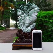 翡翠A货 老坑水润飘绿 加官进爵公鸡摆件