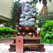 翡翠A货 糯冰飘花阳绿 莲花观音翡翠摆件