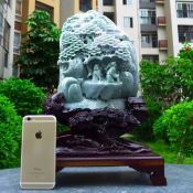 160*135*40寸老坑浅绿 松下老人山水翡翠摆件