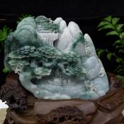 老种糯冰飘花山水翡翠摆件