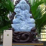 天然翡翠A货 精美浅紫 观音菩萨摆件