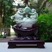 翡翠A货 老坑水润飘绿 金猴献寿寿比南山摆件