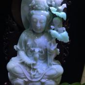 翡翠A货 老坑水润春彩 慈眉善目观音摆件