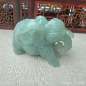 翡翠A货 满色浅绿 走向成功大象精品小摆件
