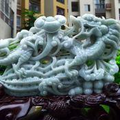翡翠A货 老坑飘绿 龙腾盛世龙勾摆件