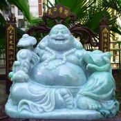 飘花阳绿翡翠A货 大件饱满笑佛翡摆件