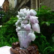 翡翠A货 老坑紫罗兰飘绿 平平安安花瓶摆件