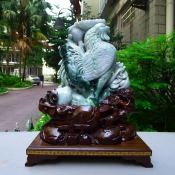 翡翠A货 老坑浅春彩飘花 金鸡独立公鸡摆件