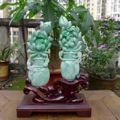 阳绿花瓶一对 平安富贵精品摆件