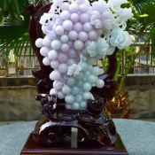 翡翠A货 糯冰春带彩 多子多福葡萄摆件