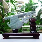 翡翠A货 老坑飘绿 龙腾盛世龙勾摆件
