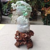 翡翠A货 糯冰春带彩生意兴隆摆件