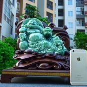 飘花满绿翡翠A货 笑口常开笑佛摆件