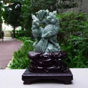 翡翠A货 老坑水润豆绿 英明神武鹦鹉摆件