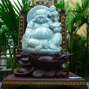翡翠A货 精雕飘绿 招财纳福财神爷大摆件