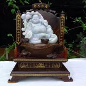 老坑糯冰浅春彩弥勒佛翡翠摆件
