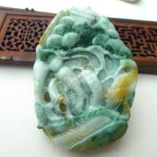 翡翠A货 老坑水润飘绿 年年有鱼荷花鱼摆件