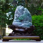 550.370.150寸糯种春带彩 超大件山水翡翠摆件