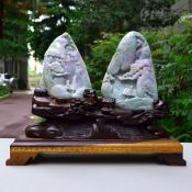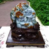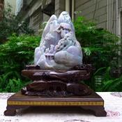 糯冰春彩天然翡翠A货 超大件山水摆件