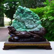 老坑满绿 指点江山运筹帷幄山水翡翠摆件