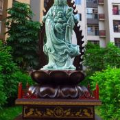 翡翠A货 老坑水润满绿 观世音菩萨翡翠摆件