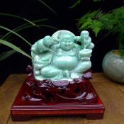 老坑满绿翡翠 笑口常开弥勒佛厚装佛摆件