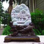 225*130*30寸老坑浅绿 松下老人山水翡翠摆件
