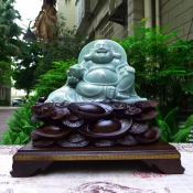 翡翠A货 老坑满绿 开怀招财弥勒佛摆件