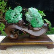翡翠A货 老坑水润满绿 招财进宝吸亿精品摆件