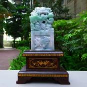 翡翠A货 老坑三彩 龙腾盛世龙头印章摆件