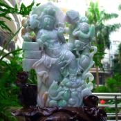 翡翠A货 老坑水润三彩 送子观音翡翠摆件
