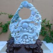翡翠A货 老坑水润淡蓝紫飘花 双龙戏珠翡翠摆件