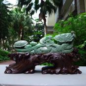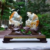 218*250*62寸精雕黄加绿 童子送福翡翠摆件