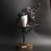 糯冰带色龙头翡翠摆件