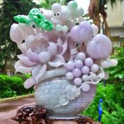 翡翠A货 老坑浅紫罗兰飘绿 寿比南山花篮摆件