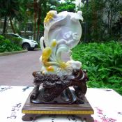 糯种三彩 精雕花开富贵翡翠摆件