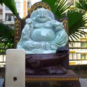 精美春彩翡翠A货 超大尊笑佛摆件