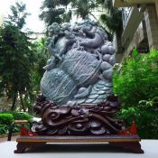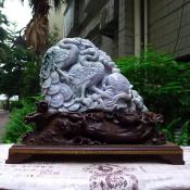 老坑蓝水 翡翠A货 生意兴隆代代有钱花生龙大摆件
