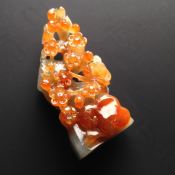 巧雕红翡 花开富贵翡翠摆件