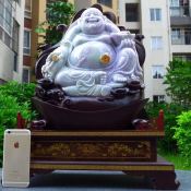 天然翡翠A货 春彩大尊笑佛翡翠摆件